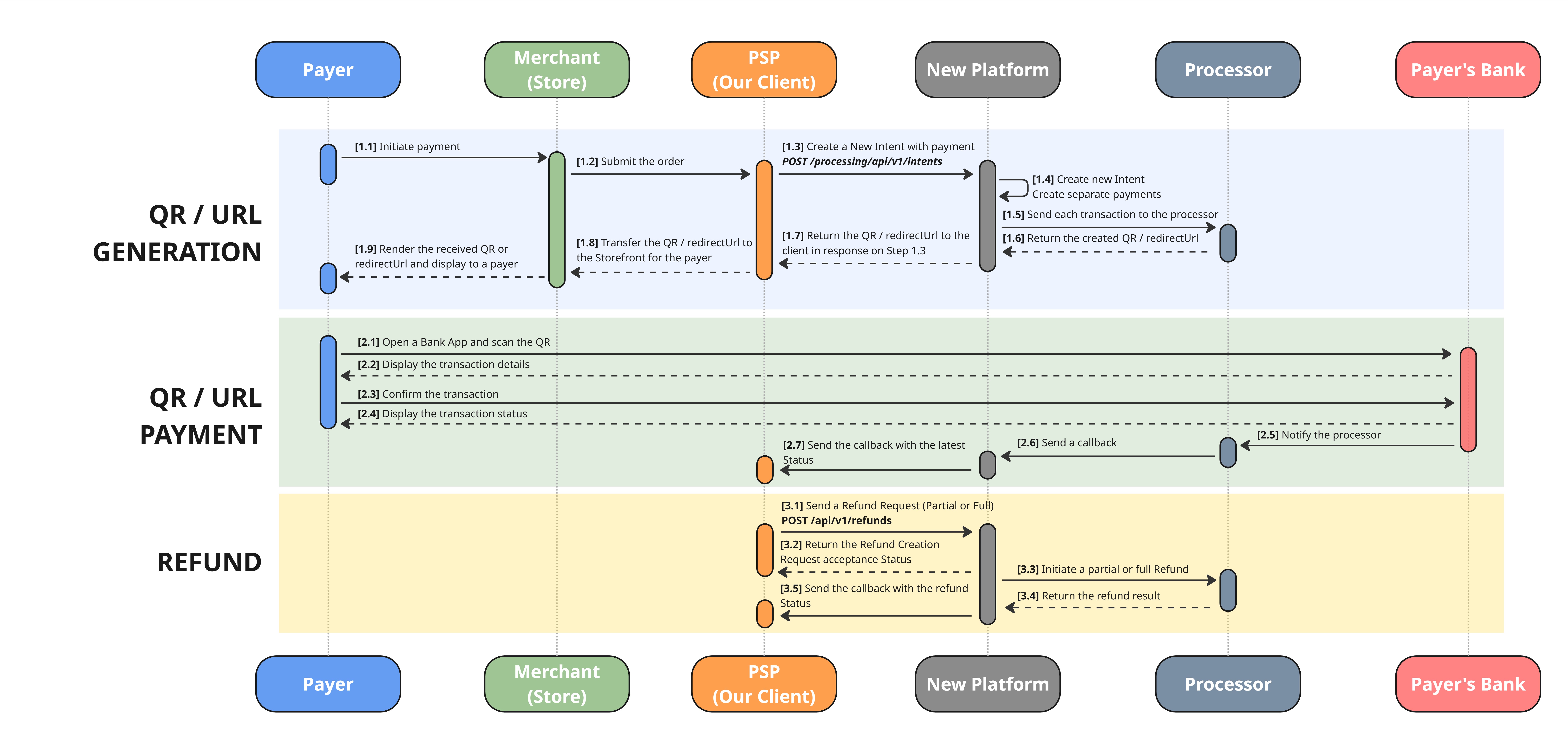 POST /processing/api/v1/intents. - A synchronous response is returned with