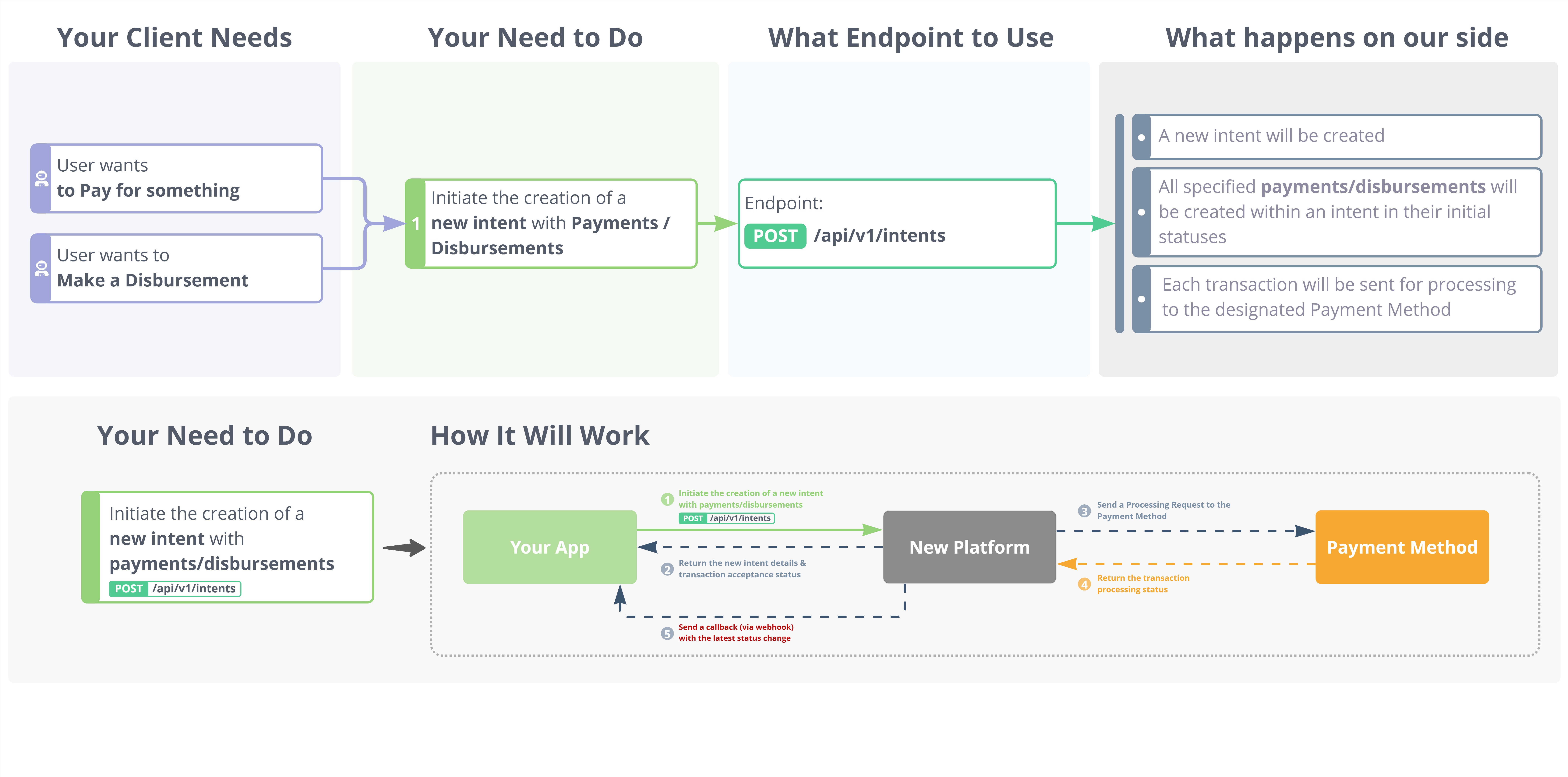- When you initiate a new payment or disbursement, you must first create an Intent.