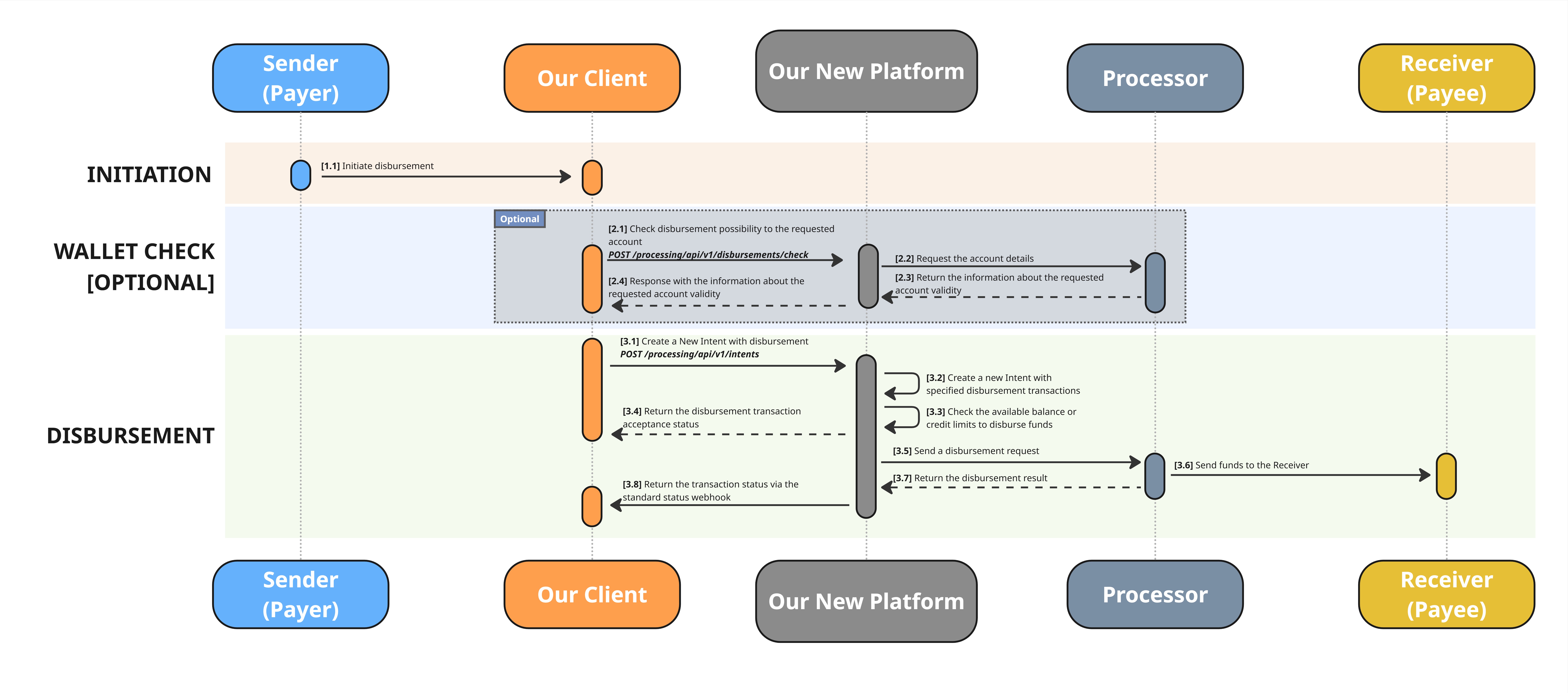 - If the balance allows us to educt the disbursement amount + processing fee, the transaction will be accepted